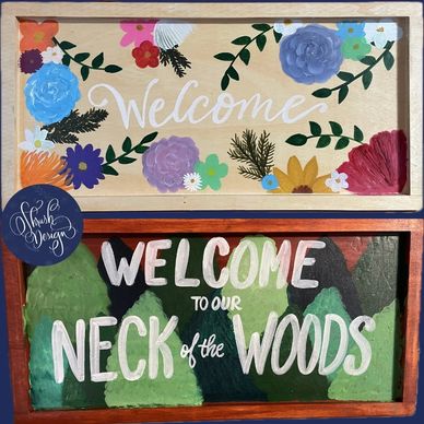 These door hanger signs are hand-painted and sealed for both indoor and outdoor use.